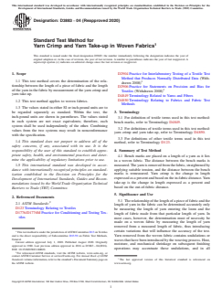 ASTM D3883-04(2020) - Standard Test Method for Yarn Crimp and Yarn Take-up in Woven Fabrics