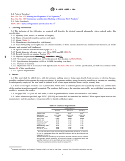 - Chemical Requirements: Details maximum levels for carbon, manganese, phosphorus, sulfur, silicon, and other elements ensuring consistent steel quality.