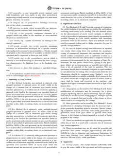5.1 Test Methods A, B, and C provide a means of evaluating the tensile modulus of geogrids and geotextiles for applications involving small-strain cyclic loading. The test methods allow for the determination of cyclic tensile modulus at different levels of prescribed or permanent strain, thereby accounting for possible changes in cyclic tensile modulus with increasing permanent strain in the material. These test methods shall be used for research testing and to define properties for use in specific design methods.