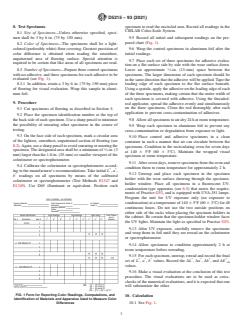 • Test Procedure: Includes preparing vinyl specimens, applying adhesives, heat aging, UV exposure, and subsequent color measurement.