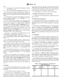 1.2 This test method is applicable to samples with total aldehyde concentration (as acetaldehyde) to 50 mg/kg or 35 mg/kg (as formaldehyde). The limit of detection (LOD) is 0.4 mg/kg and the limit of quantitation is 1.2 mg/kg.