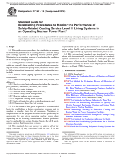 ASTM D7167-12(2018) - Standard Guide for Establishing Procedures to Monitor the Performance of Safety-Related Coating Service Level III Lining Systems in an Operating Nuclear Power Plant