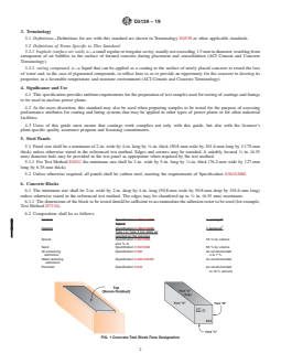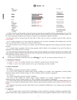 - Sample Composition and Size: Specifies minimum requirements for size, thickness, and materials for steel panels and concrete blocks used in coating tests.