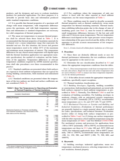 - Testing Methods: References standard ASTM test methods (e.g., C177, C201, C518, C335/C335M, C1363) to be used in combination with this practice for determining thermal properties like thermal conductivity, transmittance, and resistance.
