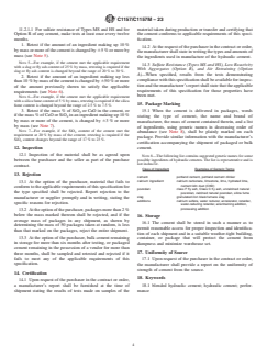 resistance to attack by sulfates, and heat of hydration. Optional requirements are provided for the property of low reactivity with