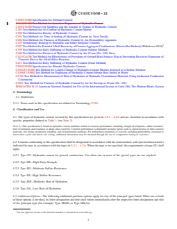 Note 1: There are two related hydraulic cement standards, Specification C150/C150M for portland cement and Specifications C595/C595M for blended cements, both of which contain prescriptive and performance requirements