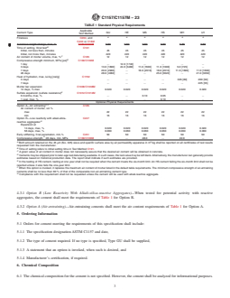aggregates, the cement shall meet the requirements of Table 1 for Option R.