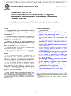 Keywords: multijunction photovoltaic cells, spectral response measurement, electrical performance, ASTM E2236, nonconcentrator PV modules, solar energy standards, current balance, PV test methods.