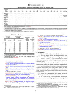 diameter pin. The bend test requirements in Table 2 for evaluating the coating flexibility of production-coated steel reinforcing bars, for bar sizes Nos.