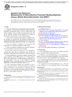 ASTM E3320-21 - Standard Test Method for Measurement of Retroreflective Pavement Marking Materials Using a Mobile Retroreflectometer Unit (MRU)