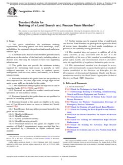 ASTM F2751-16 – Standard Guide for Training of a Land Search and Rescue Team Member defines the minimum requirements for the training of personnel assigned as Land Search and Rescue (SAR) Team Members. This standard guide, developed by ASTM International, sets out the essential knowledge, skills, and abilities necessary for effective performance in land-based SAR operations, excluding technical rope rescue and other specialized disciplines.