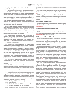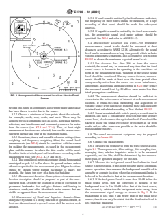 SIGNIFICANCE AND USE 4.1 Situations for which outdoor sound level data are required include, but are not limited to, comparison of sound levels with criteria or regulatory limits. 4.2 This guide provides information to (1) measure outdoor sound level in the vicinity of outdoor fixed noise sources, and (2) document other observations necessary for the measurements. This guide provides a standard procedure for a trained acoustical professional that will produce results and documentation which are consistent with the purposes cited in 1.1.1 – 1.1.5. 4.3 These sound measurements should be performed by or under the direction of a person experienced in the measurement and analysis of outdoor sound, and who is familiar with the use of the required equipment and techniques. 4.4 This guide can be used by individuals, regulatory agencies, or others as a measurement guide to collect data on the sound level received from a fixed source within the constraints cited in Section 8 and Appendix X1 and Appendix X2. 4.5 This guide can be used to establish compliance or noncompliance at the time, distance, and conditions during which the data were obtained. However, this guide is only a measurement procedure and does not address the problem of projecting the acquired data outside those conditions, other times of day, other distances, or comparison with specific criteria. In particular, for a given sound source level, distant noise levels will often be found to be greater at night than during the day. SCOPE 1.1 This guide covers the measurement of outdoor sound due to a fixed sound source such as a siren, stationary pump, power plant, or music amphitheater. Procedures characterize the location, sound level, spectral content, and temporal characteristics of that sound source at the time of measurement. Users should be aware that wind and temperature gradients can cause significant variations in sound levels beyond 300 m. With appropriate caution, the use of measurements resulting from this guide include but are not limited to: 1.1.1 Assessing compliance with applicable regulations, 1.1.2 Monitoring the effectiveness of a noise reduction plan, 1.1.3 Verifying the effectiveness of measures for mitigation of noise impact, 1.1.4 Validating sound prediction models, and 1.1.5 Obtaining source data for use in sound prediction models. 1.2 This standard does not purport to address all of the safety concerns, if any, associated with its use. It is the responsibility of the user of this standard to establish appropriate safety, health, and environmental practices and determine the applicability of regulatory limitations prior to use. 1.3 This international standard was developed in accordance with internationally recognized principles on standardization established in the Decision on Principles for the Development of International Standards, Guides and Recommendations issued by the World Trade Organization Technical Barriers to Trade (TBT) Committee.