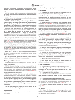 - Equipment and Setup: Specifies the use of calibrated fatigue test machines, appropriate fixturing, and the use of metal or plastic spacers to ensure accurate load distribution and prevent unintended damage or stress concentrations.