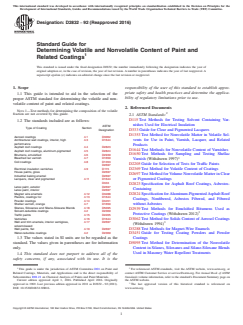 ASTM D2832-92(2016), Standard Guide for Determining Volatile and Nonvolatile Content of Paint and Related Coatings, provides guidance for selecting appropriate ASTM methods to determine volatile and nonvolatile content in paints, varnishes, and coatings. Accurate measurement of these contents is essential for producers, users, and regulators in comparing coverage efficiency, estimating volatile organic content (VOC), and ensuring compliance with environmental and safety standards.
