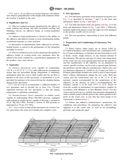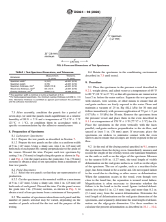 • Specimen Preparation: The method outlines strict guidelines for specimen preparation, including material selection, adhesive application, and panel conditioning for accurate testing.
