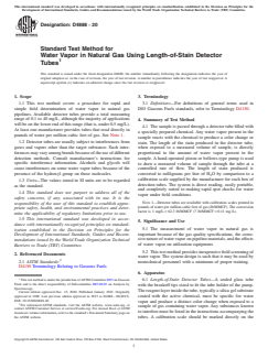 ASTM D4888-20 - Standard Test Method for Water Vapor in Natural Gas Using Length-of-Stain Detector Tubes