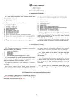 SIGNIFICANCE AND USE 5.1 This guide establishes procedures to help parties involved in unit price piping insulation contracts reach agreement as to what components will be counted for pricing purposes. SCOPE 1.1 This guide defines the components of an insulated piping system to be measured or counted to determine quantities and pricing for unit price contracts or extra work. 1.2 Pricing may be done through unit pricing for each item by pipe size, type of insulation system, insulation thickness, double or multilayer insulation, type of weatherproofing or jacketing, and pressure rating (if necessary) or through component (fitting) factor or multipliers. 1.2.1 Component (fitting) factors or multipliers, which are multipliers times the straight length of piping as shown in Table 1, determine relative prices for each component not within the scope of this guide. These factors or multipliers are to be determined by the insulating contractor relative to the given situation and insulation system specification. 1.2.2 It is suggested that only one type of pricing be used on a project. 1.2.3 The values stated in inch-pound units are to be regarded as the standard. 1.3 This international standard was developed in accordance with internationally recognized principles on standardization established in the Decision on Principles for the Development of International Standards, Guides and Recommendations issued by the World Trade Organization Technical Barriers to Trade (TBT) Committee.
