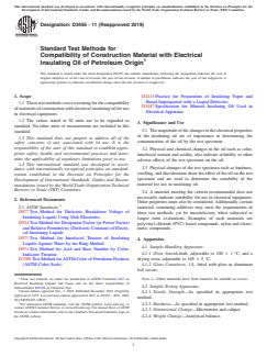 ASTM D3455-11(2019) - Standard Test Methods for Compatibility of Construction Material with Electrical Insulating Oil of Petroleum Origin