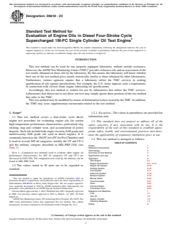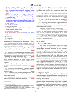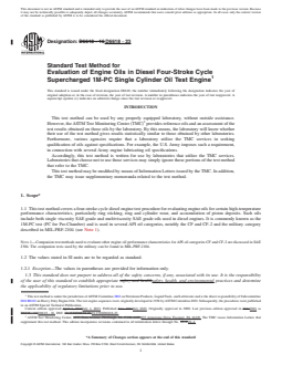1.1 This test method covers a four-stroke cycle diesel engine test procedure for evaluating engine oils for certain high-temperature performance characteristics, particularly ring sticking, ring and cylinder wear, and accumulation of piston deposits. Such oils include both single viscosity SAE grade and multiviscosity SAE grade oils used in diesel engines. It is commonly known as the 1M-PC test (PC for Pre-Chamber) and is used in several API oil categories, notably the CF and CF-2 and the military category described in MIL-PRF-2104 (see Note 1).
