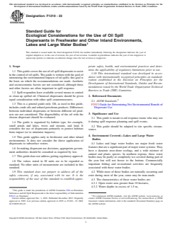 ASTM F1210-23 - Standard Guide for Ecological Considerations for the Use of Oil Spill Dispersants in Freshwater and Other Inland Environments, Lakes and Large Water Bodies