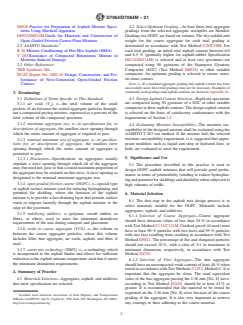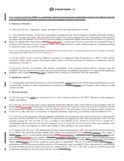 The standard outlines requirements for materials selection, asphalt mix design using volumetric properties (such as air voids and stone-on-stone contact), and laboratory evaluation techniques. The practices described utilize the Superpave Gyratory Compactor (SGC) or other equivalent compaction devices for preparing test specimens.