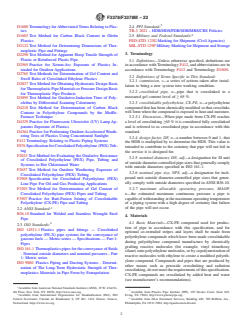 The ASTM F3378/F3378M-22 specification references several complementary standards relevant to the evaluation and application of CX-PE pipes, including: