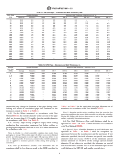 ensure that any change in diameter of the pipe during cross- Table 1 or Table 2 for the applicable size pipe. Measure out of