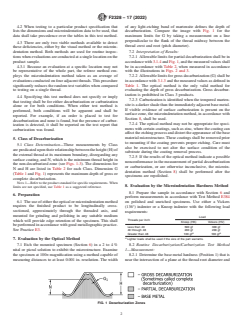 1.2 Two routine methods are described for measuring the limits of and determining the presence of decarburization or carburization—the optical method and the microindentation method 1. Either method is appropriate for routine examinations. The microindentation method 2 shall be considered the referee method.