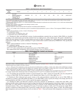 4.1.1 Reinforced, filled, and lubricated versions of polyoxymethylene materials that are found in Table POM are classified