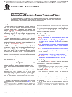 ASTM E2818-11 - Standard Practice for Determination of Quasistatic Fracture Toughness of Welds - Effective Date