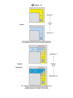 4.2.1 Static is when the environment is similar throughout the test apparatus. For example, there are minor fluctuations in temperature throughout the apparatus as shown in Fig. 1 and Fig. 2. Dynamic is when the environment significantly differs within the test apparatus. For example, when the temperature changes between repetitions as shown in Fig. 3. Transitional is when the environment significantly differs in different areas within the test apparatus as shown in Fig. 4. The intent here is to not give specific guidance, but to provide a high-level classification of a particular set of environmental conditions. If environment consistency is dynamic or transitional, or both, a report form (see Section 7) for each unique set of environmental conditions should be completed.