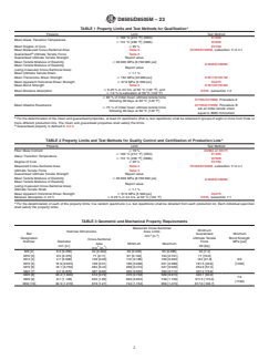 1.3 Bars produced according to this standard are qualified using the test methods and must meet the requirements given in Table 1. Quality control and certification of production lots of bars are completed using the test methods and must meet the requirements given in Table 2.