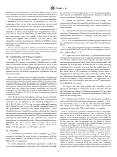 8.1 Geosynthetics—Prepare each finished specimen to specimen to the width appropriate for the particular geosynthetic with the