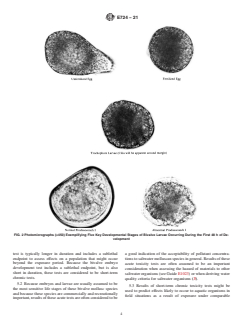 ASTM E724-21 is a guide published by ASTM International. Its full title is "Standard Guide for<brk type="line"/> Conducting Static Short-Term Chronic Toxicity Tests Starting with Embryos of Four Species of Saltwater Bivalve Molluscs". This standard covers: SIGNIFICANCE AND USE 5.1 An acute toxicity test is conducted to assess the effects of a short term exposure of organisms to a test material under specific experimental conditions. An acute toxicity test does not provide information concerning whether delayed effects will occur and typically evaluates effects on survival. A chronic test is typically longer in duration and includes a sublethal endpoint to assess effects on a population that might occur beyond the exposure period. Because the bivalve embryo development test includes a sublethal endpoint, but is also short in duration, these tests are considered to be short-term chronic tests. 5.2 Because embryos and larvae are usually assumed to be the most sensitive life stages of these bivalve mollusc species and because these species are commercially and recreationally important, results of these acute tests are often considered to be a good indication of the acceptability of pollutant concentrations to saltwater molluscan species in general. Results of these acute toxicity tests are often assumed to be an important consideration when assessing the hazard of materials to other saltwater organisms (see Guide E1023) or when deriving water quality criteria for saltwater organisms (3) . 5.3 Results of short-term chronic toxicity tests might be used to predict effects likely to occur to aquatic organisms in field situations as a result of exposure under comparable conditions, except that toxicity to benthic species might depend on sorption or settling of the test material onto the substrate. 5.4 Results of short-term chronic tests might be used to compare the sensitivities of different species to different test materials, and to determine the effects of various environmental factors on results of such tests. 5.5 Results of short-term chronic toxicity tests might be useful for studying biological availability of, and structure activity relationships between, test materials. 5.6 Results of any toxicity test will depend on temper... SCOPE 1.1 This guide describes procedures for obtaining laboratory data concerning the acute effects of a test material on embryos and the resulting larvae of four species of saltwater bivalve molluscs (Pacific oyster, Crassostrea gigas Thunberg; eastern oyster, Crassostrea virginica Gmelin; quahog or hard clam, Mercenaria mercenaria Linnaeus; and the mussel species complex (Mytilus spp.) including the blue mussel, Mytilus edulis Linnaeus; the Mediterranean mussel, Mytilus galloprovincialis Lamark; and the Northern Bay Mussel, Mytilus trossulus Gould) during static 48-h exposures. These procedures will probably be useful for conducting static short-term chronic toxicity tests starting with embryos of other bivalve species (1)2 although modifications might be necessary. 1.2 Other modifications of these procedures might be justified by special needs or circumstances. Although using procedures appropriate to a particular species or special needs and circumstances is more important than following prescribed procedures, results of tests conducted by using unusual procedures are not likely to be comparable to results of many other tests. Comparison of results obtained by using modified and unmodified versions of these procedures might provide useful information concerning new concepts and procedures for conducting 48-h acute tests starting with embryos of bivalve molluscs. 1.3 These procedures are applicable to most chemicals, either individually or in formulations, commercial products, or known mixtures. With appropriate modifications these procedures can be used to conduct acute tests on temperature, dissolved oxygen, and pH and on such materials as aqueous effluents (see also Guide E1192), leachates, oils, particulate matter, sediments, and surface waters. Renewal tests might be preferable to static tests for materials that have a high oxygen demand, are highly volatile, are rapidly biologically or chemically transformed...