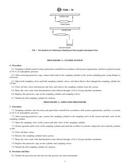 ABSTRACT This practice covers procedures for obtaining a sample of noncryogenic aerospace propellant. Two procedures are covered as follows: procedure 1 (closed system) and procedure 2 (open-end procedure). SCOPE 1.1 This practice covers procedures for obtaining a sample of noncryogenic aerospace propellant. Two procedures are covered as follows: Procedure 1—Closed System (Section 6), and Procedure 2—Open-End Procedure (Section 7). 1.2 This standard does not purport to address all of the safety concerns, if any, associated with its use. It is the responsibility of the user of this standard to establish appropriate safety, health, and environmental practices and determine the applicability of regulatory limitations prior to use. For hazard statements see Sections 4 and 5. 1.3 This international standard was developed in accordance with internationally recognized principles on standardization established in the Decision on Principles for the Development of International Standards, Guides and Recommendations issued by the World Trade Organization Technical Barriers to Trade (TBT) Committee.