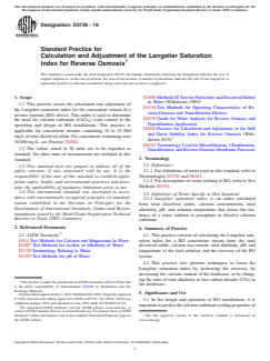 ASTM D3739-19 - Standard Practice for Calculation and Adjustment of the Langelier Saturation Index for Reverse Osmosis
