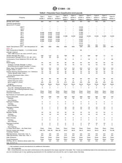 foam shall conform to the requirements in Table 1 and Table 2