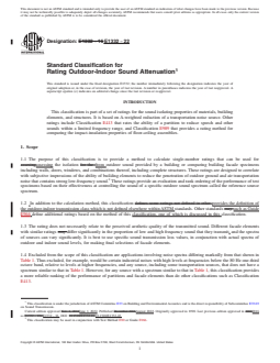 1.2 In addition to the calculation method, this classification provides the definition of the outdoor-indoor transmission class which is not defined elsewhere within ASTM standards. Other standards such as Guide E966 define additional ratings based on the method of this classification, one of which is discussed in this classification.