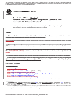 REDLINE ASTM D7785-21 - Standard Practice for Water in Lint Cotton by Oven Evaporation Combined with Volumetric Karl Fischer Titration