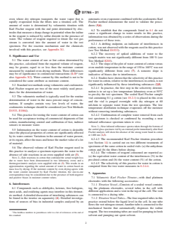 Note 2: Side reactions in cotton that confound the actual weight loss due to water have been demonstrated in two laboratory ovens and a thermogravimetric analysis oven supplied with air (3). This results in an approximation regarding the actual amount of water in cotton based on mass loss by drying. If the moisture content by oven drying agrees with the water content measured by Karl Fischer titration, the one-to-one correspondence may be coincidental due to the presence of both negative a...