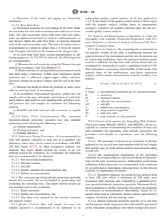 ASTM G158-23 is a guide published by ASTM International. Its full title is "Standard Guide for Three Methods of Assessing Buried Steel Tanks". This standard covers: SIGNIFICANCE AND USE 4.1 This guide provides three methods for determining the suitability of a buried steel tank to be upgraded with cathodic protection. 4.2 This guide may be used to assess any UST, including non-regulated USTs. 4.3 This guide provides three alternative methods but does not recommend any specific method or application. The responsibility for selection of a method rests with the user. 4.4 This guide has specific suggestions for vendor provided information which should be requested and reviewed by the user. SCOPE 1.1 This guide covers procedures to be implemented prior to the application of cathodic protection for evaluating the suitability of a tank for upgrading by cathodic protection alone. 1.2 Three procedures are described and identified as Methods A, B, and C. 1.2.1 Method A—Noninvasive with primary emphasis on statistical and electrochemical analysis of external site environment corrosion data. 1.2.2 Method B—Invasive ultrasonic thickness testing with external corrosion evaluation. 1.2.3 Method C—Invasive permanently recorded visual inspection and evaluation including external corrosion assessment. 1.3 This guide presents the methodology and the procedures utilizing site and tank specific data for determining a tank’s condition and the suitability for such tanks to be upgraded with cathodic protection. 1.4 While this guide provides minimum procedures for assessing a tank's condition, this guide does not provide minimum installation procedures or requirements for upgrades of the tank by cathodic protection. 1.5 The values stated in inch-pound units are to be regarded as standard. The values given in parentheses are mathematical conversions to SI units that are provided for information only and are not considered standard. 1.6 This standard does not purport to address all of the safety concerns, if any, associated with its use. It is the responsibility of the user of this standard to establish appropriate safety, health, and environmental practices and determine the applicability of regulatory limitations prior to use. 1.7 This international standard was developed in accordance with internationally recognized principles on standardization established in the Decision on Principles for the Development of International Standards, Guides and Recommendations issued by the World Trade Organization Technical Barriers to Trade (TBT) Committee.