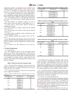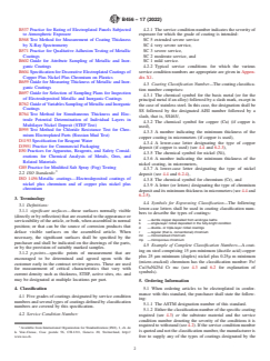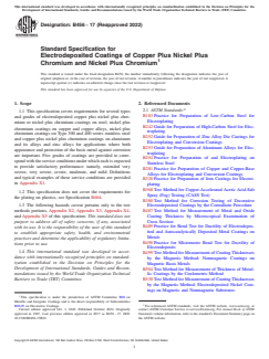 Notably, this standard does not cover coatings on plastics, which are addressed in another specification (ASTM B604). ASTM B456-17(2022) specifies coating types, grades, classification systems for severity of service conditions, and requirements for performance and sampling.