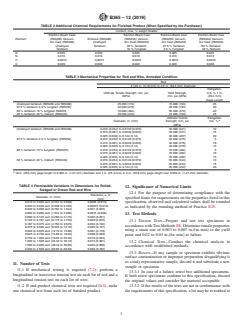 ABSTRACT This specification covers unalloyed and alloyed tantalum rod and wire. The materials covered are: R05200, R05400, R05255, R05252, and R05240. These materials shall be made from vacuum-arc melted or electron-beam melted ingots or powder-metallurgy consolidated unalloyed tantalum. The chemical composition shall conform to the required contents of carbon, oxygen, nitrogen, hydrogen, niobium, iron, titanium, tungsten, molybdenum, silicon, nickel, and tantalum. Chemical analysis shall be made. Mechanical properties shall conform to the required tensile strength, yield strength, and elongation. SIGNIFICANCE AND USE 12.1 For the purpose of determining compliance with the specified limits for requirements on the properties listed in this specification, observed and calculated values shall be rounded as indicated by the rounding method of Practice E29. SCOPE 1.1 This specification covers unalloyed and alloyed tantalum rod and wire. 1.2 The materials covered by this specification are: 1.2.1 R05200, unalloyed tantalum, electron-beam furnace or vacuum-arc melt, or both, 1.2.2 R05400, unalloyed tantalum, powder-metallurgy consolidation, 1.2.3 R05255, tantalum alloy, 90 % tantalum, 10 % tungsten, electron-beam furnace or vacuum-arc melt, or both, 1.2.4 R05252, tantalum alloy, 97.5 % tantalum, 2.5 % tungsten, electron-beam furnace or vacuum-arc melt, or both, and 1.2.5 R05240 tantalum alloy, 60 % tantalum, 40 % niobium, electron-beam furnace or vacuum-arc melt, or both. 1.3 The values stated in inch-pound units are to be regarded as standard. The values given in parentheses are mathematical conversions to SI units that are provided for information only and are not considered standard. 1.4 The following precautionary caveat pertains only to the test methods portion, Section 13, of this specification: This standard does not purport to address all of the safety problems, if any, associated with its use. It is the responsibility of the user of this standard to establish appropriate safety, health, and environmental practices and determine the applicability of regulatory limitations prior to use. 1.5 This international standard was developed in accordance with internationally recognized principles on standardization established in the Decision on Principles for the Development of International Standards, Guides and Recommendations issued by the World Trade Organization Technical Barriers to Trade (TBT) Committee.