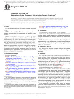 Keywords: ASTM D3732-23, ultraviolet-cured coatings, cure time, UV curing, coatings reporting, test methods, manufacturing quality, performance testing.