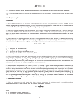 Provides formulas for calculating resistivity based on specimen cross-sectional area or weight, in both metric and customary units.