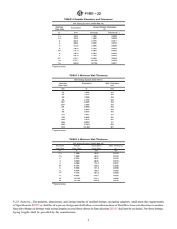 5.2.5 Patterns—The patterns, dimensions, and laying lengths of molded fittings, including adaptors, shall meet the requirements