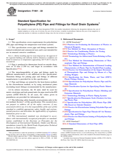 ASTM F1901-22 - Standard Specification for Polyethylene (PE) Pipe and Fittings for Roof Drain Systems