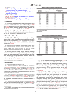 - Dimensional Requirements: Pipes are manufactured based on ISO and IPS outside diameter sizing systems for compatibility and standardization. Tables define tolerances for outside diameters and minimum wall thicknesses.