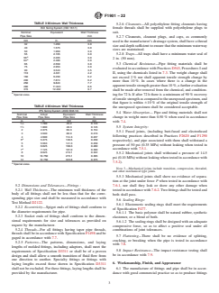 ABSTRACT This specification covers requirements for polyethylene (PE) pipe and fittings for normal residential and commercial roof drain systems. Material for pipe or fitting shall be made from PE virgin plastic as defined by hydrostatic design stresses and shall contain suitable stabilizers and antioxidants. Pipe and fitting requirements include pipe dimensions, fitting dimensions, chemical resistance, water absorption, system integrity, sealing rings, flattening, impact resistance, workmanship, finish, and appearance. Test methods include test conditions, chemical resistance, water absorption, hydrostatic pressure test, mechanical-joint pullout test, threads, flattening, and impact resistance. Quality and product marking shall also conform to the requirements of this specification. SCOPE 1.1 This specification covers requirements for polyethylene (PE) pipe and fittings for nonpressure roof drain systems. 1.2 This specification covers pipe and fittings intended for normal residential and commercial uses and is not intended for use in unusual corrosive conditions. Note 1: Before installing pipe for waste disposal use, the approval of the cognizant building code authority shall be obtained as conditions not found in normal use or temperatures approaching 140 °F (60 °C) may be encountered. 1.3 Pipe is produced in dimensions based on outside diameters of 32 mm (1.250 in.) and larger in accordance with Specification F714. 1.4 The interchangeability of pipe and fittings made by different manufacturers is not addressed in this specification. Transition fittings for joining pipe and fittings of different manufacturers is provided for in this specification. 1.5 Pipe and fittings are joined by the heat-fusion method, by the electrofusion method, or by using mechanical joints (excluding insert fittings) recommended by the manufacturer. 1.6 In referee decisions, the SI units shall be used for metric-sized pipe and inch-pound units for pipe sized in the IPS system (ANSI B36.10). In all cases, the values given in parentheses are provided for information only. 1.7 The following safety hazards caveat pertains only to the test method, Section 7, of this specification. This standard does not purport to address all of the safety concerns, if any, associated with its use. It is the responsibility of the user of this standard to establish appropriate safety, health, and environmental practices and determine the applicability of regulatory limitations prior to use. 1.8 This international standard was developed in accordance with internationally recognized principles on standardization established in the Decision on Principles for the Development of International Standards, Guides and Recommendations issued by the World Trade Organization Technical Barriers to Trade (TBT) Committee.