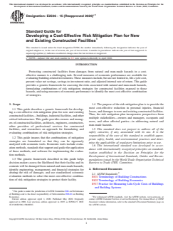ASTM E2506-15(2020)e1, titled Standard Guide for Developing a Cost-Effective Risk Mitigation Plan for New and Existing Constructed Facilities, is a comprehensive international standard issued by ASTM International. This guideline provides organizations, facility owners, architects, engineers, and other professionals with a structured approach to assess and mitigate risks associated with natural and man-made hazards in buildings and critical infrastructure.
